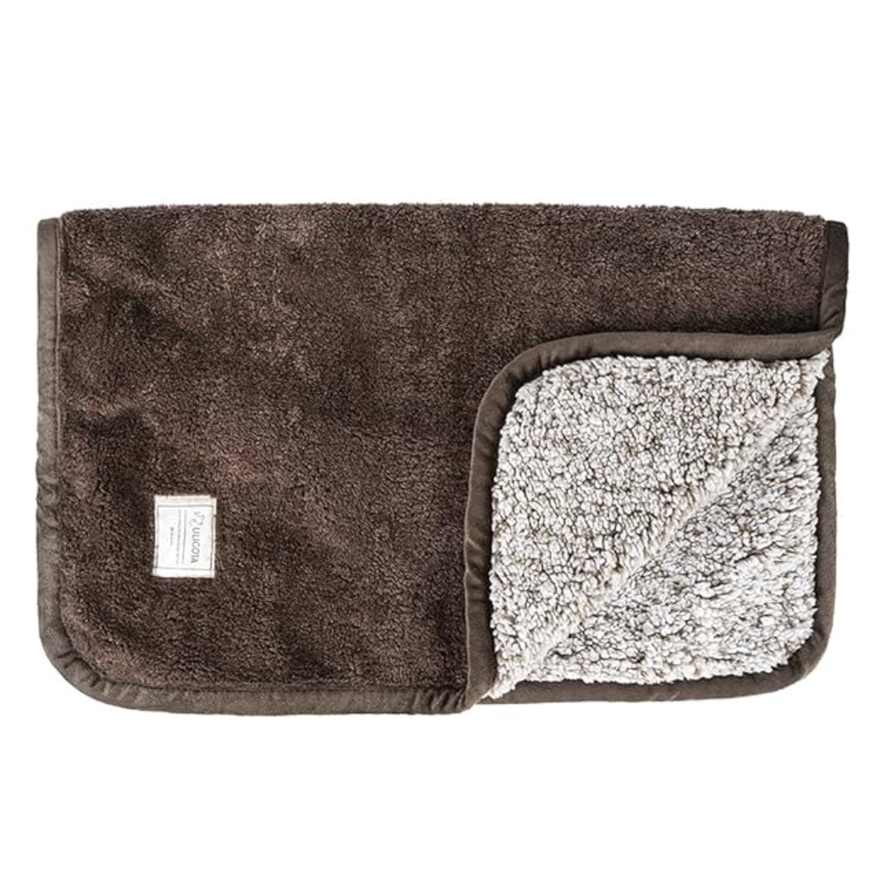 ULIGOTAのペット用ブランケットです。柔らかで高品質なポリエステル100%を使用した犬猫兼用スロー。2種類の異なる質感が楽しめるリバーシブルタイプ。片面にはオリジナルファイクファー生地、もう片面には羊毛風のシェルパ素材を使用。柔らかな肌触りでペットを暖かく快適に包んでくれる大判毛布は、寒い季節に最適です