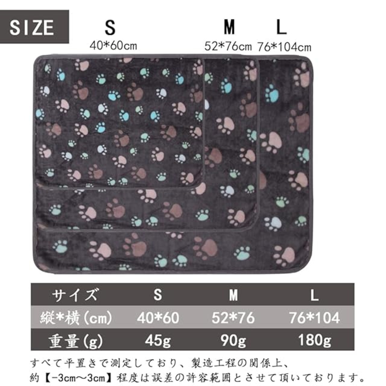【お手入れ簡単】縮みやしわにもなりにくいポリエステル100%、毛玉や毛抜けにくい素材のスクエア型毛布で、敏感肌やアレルギーをお持ちのわんちゃんに最適。洗濯機でジャブジャブ洗えるので、清潔に保て(ネット使用推奨)、長持ち使用できるペットマット。4辺パイピング加工済み、しっかりとした縫製で、完全に耐性があります。ご注意:本製品は圧縮状態で出荷します、このため梱包袋から表面は1色しか見えません。お客様が3色セットを選択する場合は、梱包を開けて3色が見えます。