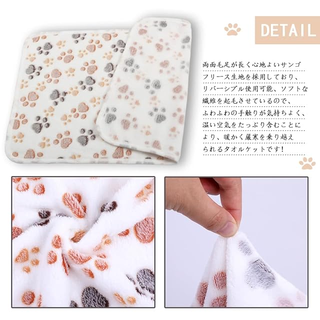 【ぽかぽか暖かい素材】やわらかな極上の肌触りがたまらない可愛いペットブランケットで、わんにゃんと一緒に寒い秋冬を快適に過ごしましょう!両面毛足が長く心地よいサンゴフリース生地を採用しており、リバーシブル使用可能、ソフトな繊維を起毛させているので、ふわふわの手触りが気持ちよく、温い空気をたっぷり含むことにより、暖かく厳寒を乗り越えられるタオルケットです!通気性がいい特徴で、季節を問わずオールシーズンにもお使いいただけます。