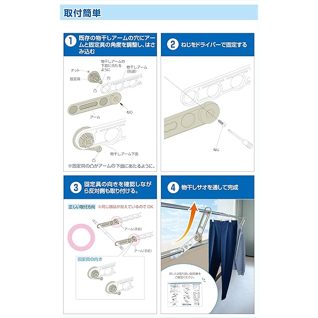 コモライフ 本体:ポリプロピレン、ガラス繊維 留め具:ステンレス お助け物干しサオアップ 高さ調節 竿掛け マンション 物干しアーム 干せる量アップ 耐荷重8kg