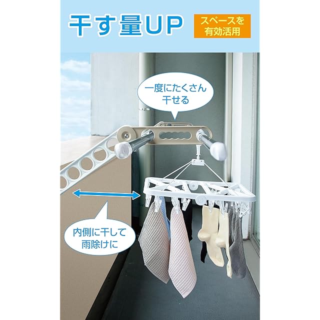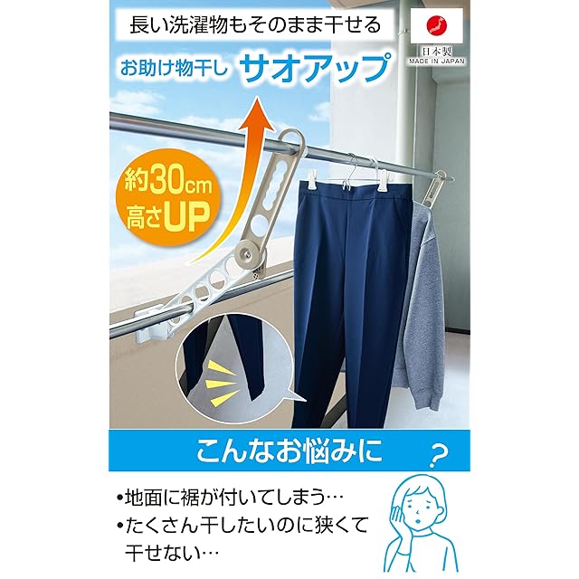 商品名:コモライフ 本体:ポリプロピレン、ガラス繊維 留め具:ステンレス お助け物干しサオアップ 高さ調節 竿掛け マンション 物干しアーム 干せる量アップ 耐荷重8kg