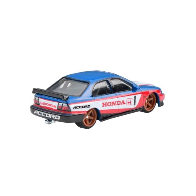 【内容】1976年に小型車、シビックの兄貴分として登場したアコード。アメリカで大好評を博して2代目からはアメリカでも生産されるようになった。途中、ハッチバックに加えてセダンやステーションワゴンも追加され、ホンダのファミリーカーの代名詞的存在となった。ホットウィールがモチーフとしたのは1993年に発売された5代目だが、当時日本でファミリーセダンをベースに接触も厭わない激しいレース展開で人気を呼んだ、JTCC(全日本ツーリングカー選手権)の競技車両風の、低い車高、フロントスポイラー&大型ウィングなどで武装した姿を表現している。同ホットウィールは、今回のブールバードで新金型アイテムとして登場。
