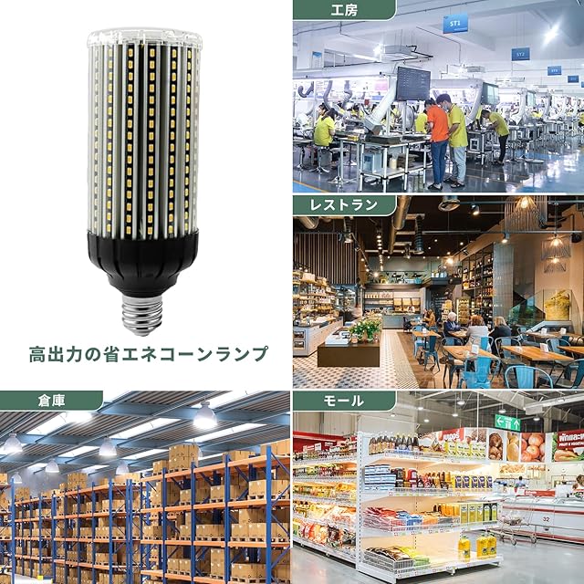 【幅広い用途】 - このLED電球は、スタジアム、街灯、スーパーマーケット、工場、倉庫などで使用できます。