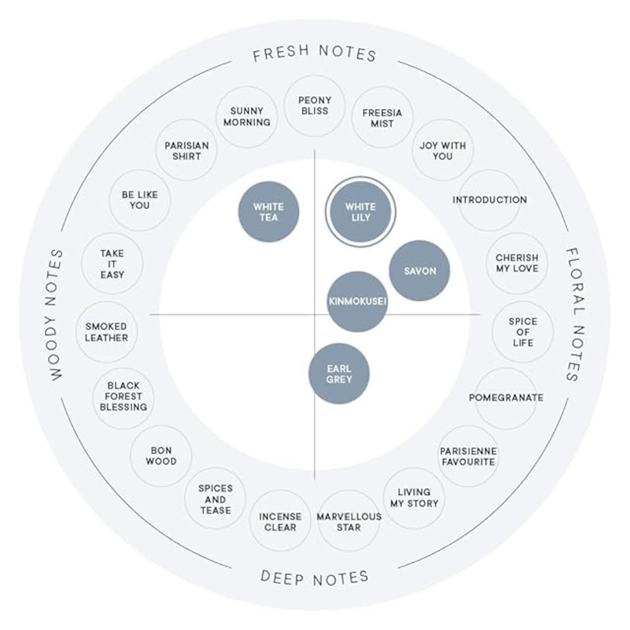 【優しく包み込む自然な香り】新しいホワイトリリーは、ミドルノートのリリーを強め、マグノリアなどフローラルの香りを加えることで、全体的に丸みのある印象へと整えました。従来の香りの特長を引き立てつつ、優しく包み込む自然な香りになっています。ホワイトリリーは、そっと隣で、なりたい自分へと近づけてくれるフレグランスです。香調だけでなく、製品ごとの香り立ちやテクスチャーも、よりお楽しみいただけるよう改良いたしました。