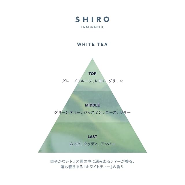 【落ち着きあるホワイトティーの香り】爽やかなシトラス調の中に深みあるティーが香る、落ち着きある「ホワイトティー」の香り。爽やかなシトラスと深みあるティーのバランスをアップデート。いつでもどこでも自分のために。