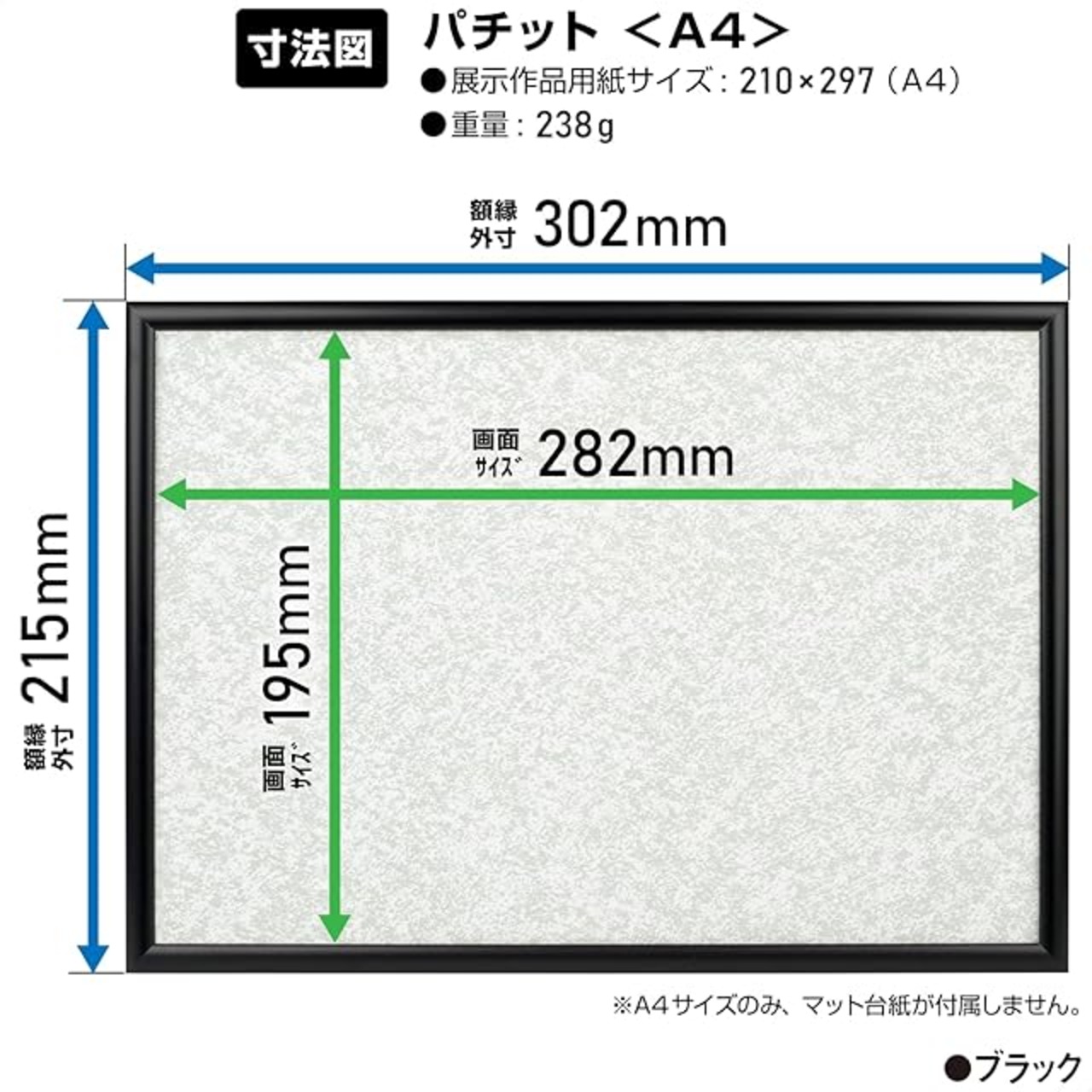 【製品仕様】■展開サイズ:A4(マットなし) ■額縁外寸法:W302×H215mm ■重量:238g