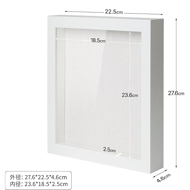 Telarana 額縁 立体額 ボックスフレーム フォトフレーム 色紙 壁掛け 卓上 お祝い ホワイト 「外径224 x276 x45 MM 内径185 x236 x26 MM」