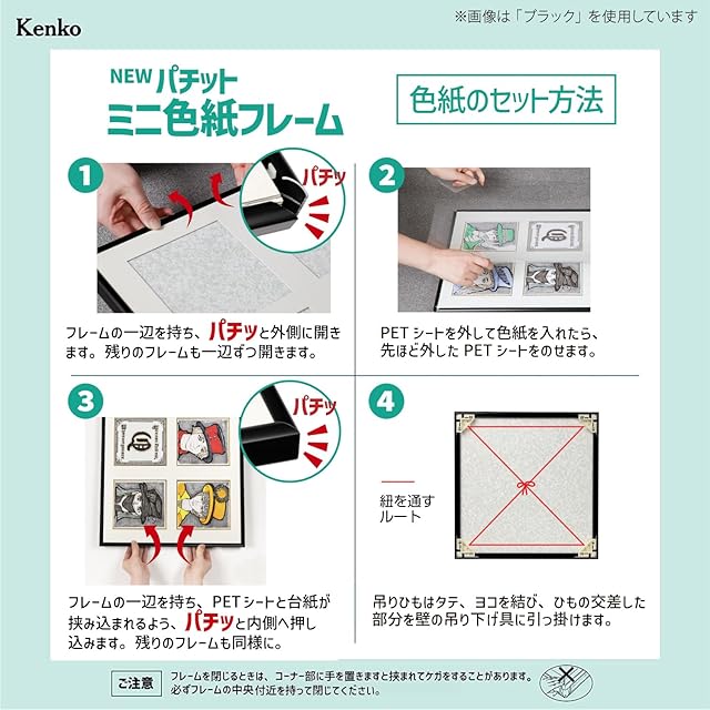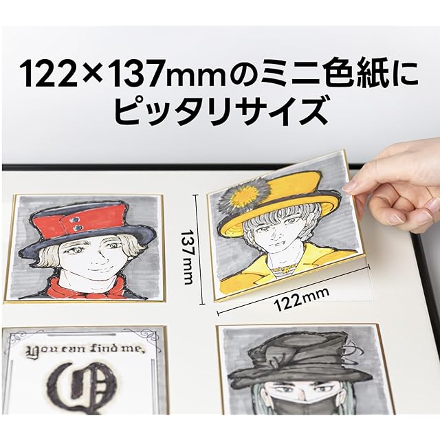 【UVカットPET材を採用!紫外線による退色を防止】表面材には極薄0.4mmのUVカットPETシートを採用。大切なミニ色紙を紫外線による経年退色から防ぎます。(※額縁内部の収納物の経年退色防止をするものではありません。)