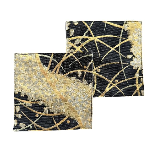 金襴コースター【桜林 黒】2枚セット コースター 金襴 西陣織 和柄 和風 京都 金らん 金蘭 黒 ブラック