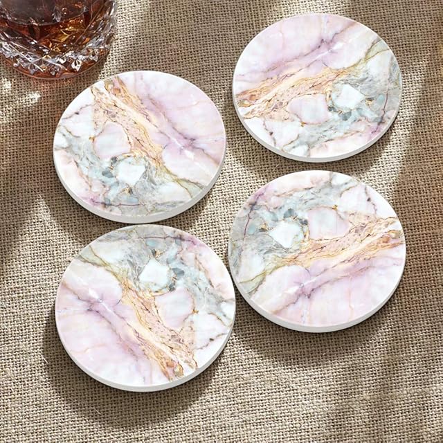 HAOCOO コースター おしゃれ セラミック製 大理石模様 コルク裏面 丸型 6枚セット マグ お茶パッド 断熱 珪藻土よりも良い 吸水 速乾 滑り止め 家庭用 オフィス用 新築祝い プレゼント-SRMK2(ピンク)