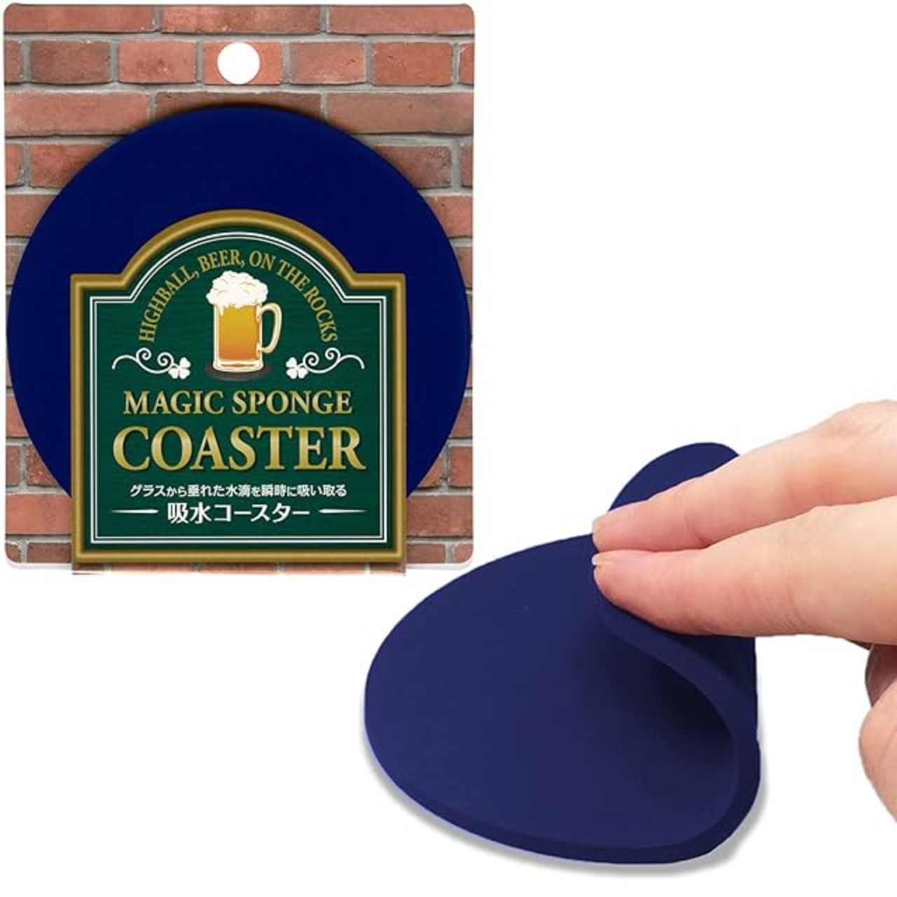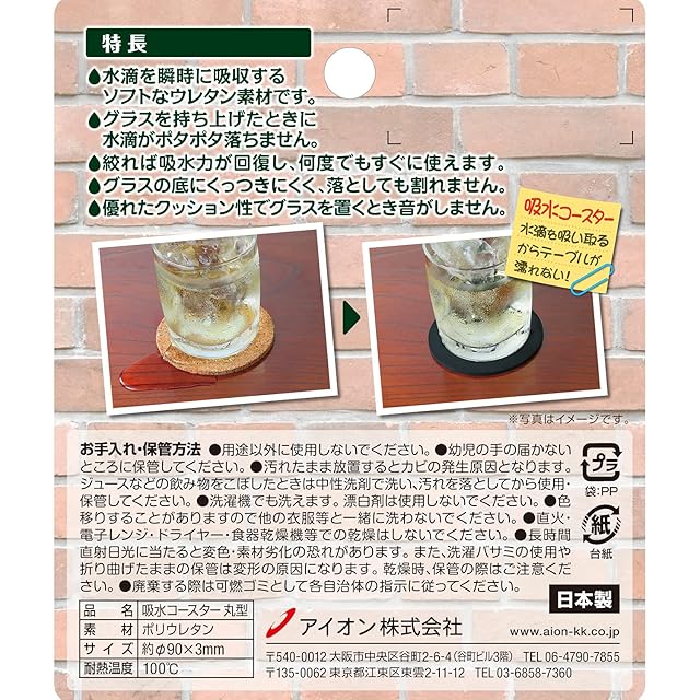 アイオン コースター 吸水 スポンジ 丸 ネイビーブルー 直径9cm コップの底にくっつきにくい 滑りにくい 割れない 欠けない 洗える 756-NB