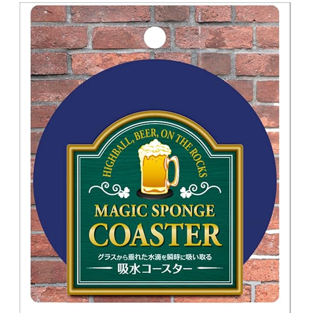 商品名:アイオン コースター 吸水 スポンジ 丸 ネイビーブルー 直径9cm コップの底にくっつきにくい 滑りにくい 割れない 欠けない 洗える 756-NB