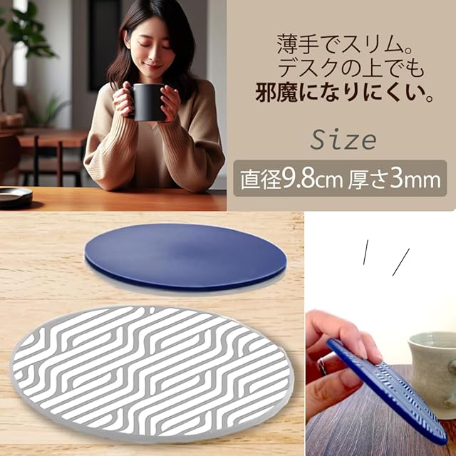 ☑【特徴2】耐熱&滑り止め効果で使いやすい! シリコンは耐熱性があります。熱いカップを置くことができます。また、柔らかな素材であるシリコンは、テーブルやデスクの表面の傷防止に効果的です。さらに、 滑り止め に効果的です。