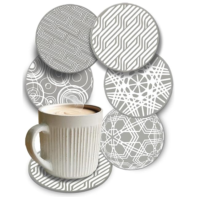 【5枚セット】 コースター シリコン おしゃれ 北欧 洗える 丸 カップマット 滑り止め 傷防止 黒 灰 紺 コースターセット (5枚(Mix), 薄灰色)