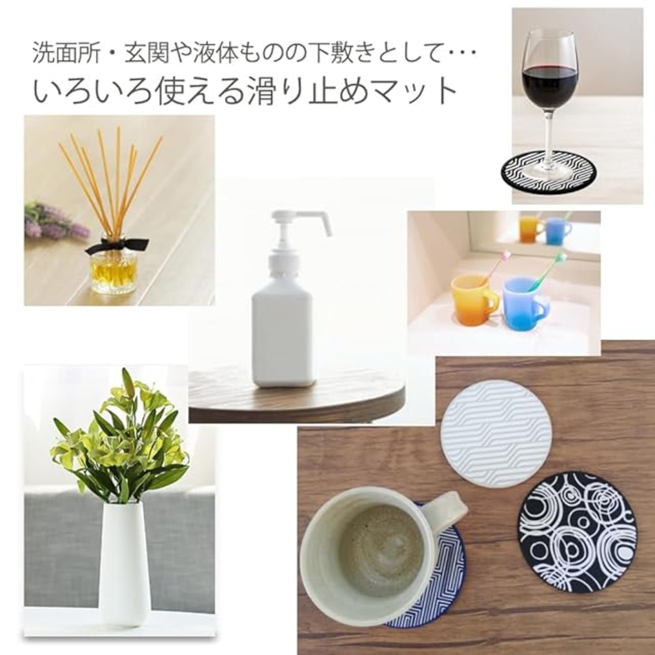 ☑【用途いろいろ】シリコンマットはテーブルなどの家具の滑り止め素材としても活用されています。こちらのコースターはシリコン製ですので、カップやグラスのマットとして。また、花瓶マット、ルームフレグランス、キャンドルなどの下敷きなどとしてご活用ください。