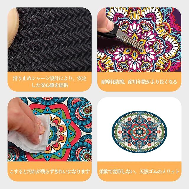 商品名:Coollooda カラフルマンダラバーコースター【4枚セット】コースター シリコン カップマット滑り止め 丸型 高吸水性 断熱 速乾 おしゃれ 北欧 家具の表面を守る 家庭用 オフィス用