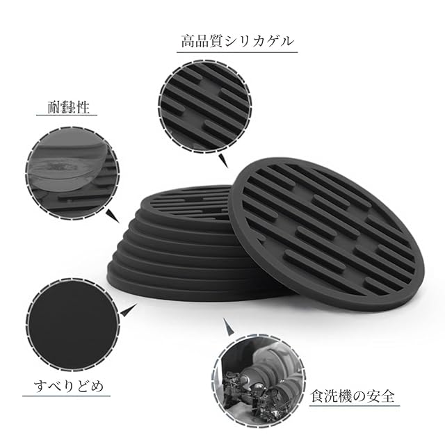 商品名:Hongzhanfa コースター 4枚セット シリコン製くっつかないコースターシリコン 水滴を受け止める 結露の水滴防止 円形 10cm マグ お茶パッド 断熱 滑り止め