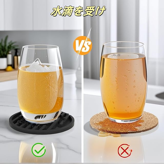 【結露防止デザイン】 立体的な波型ストライプで水滴を瞬時にキャッチ!テーブルの水濡れを防ぐ機能性デザイン,テーブルを汚さずに保ちます。滑り止め効果もあり、コップを安定して置けます。