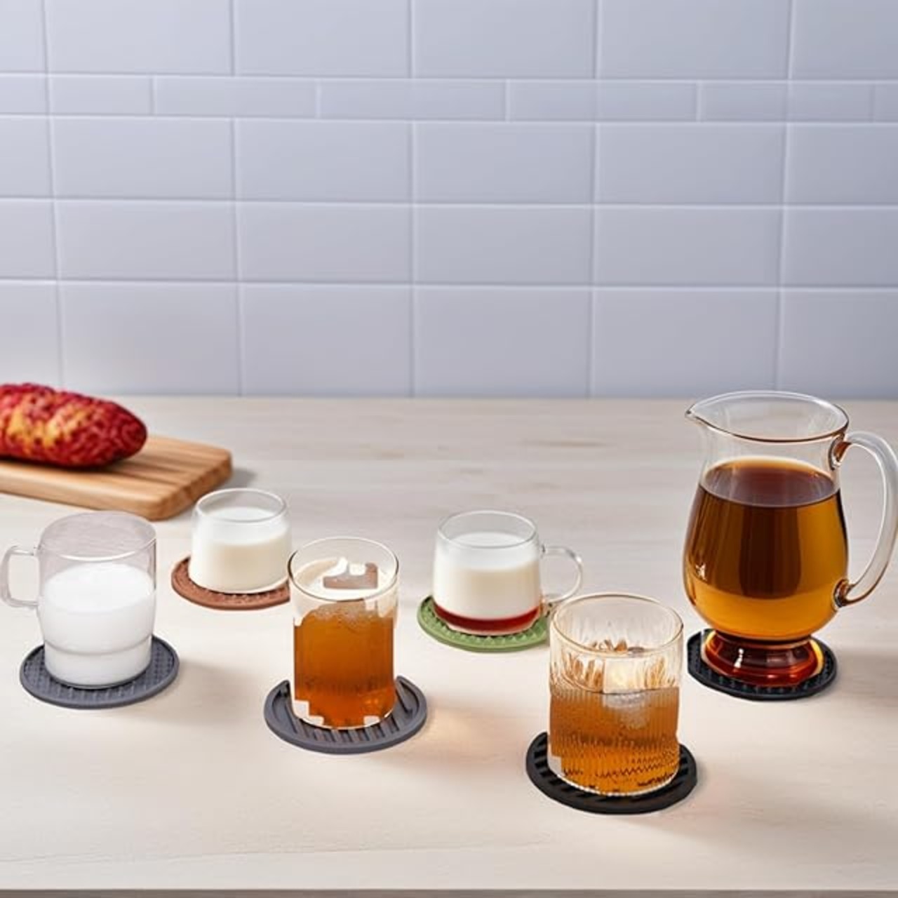 コースタードリンク用 丸型 4個セット シリコン製カップマット 断熱 立体 防水 らかい 傷防止 コースター、カップホルダーマット、天然ゴム製滑り止めカップコースター、家具の表面を守る グラス タンブラー コップ お酒 誕生日 プレゼント 父の日 ギフト 家庭用 オフィス用 新築祝い プレゼント