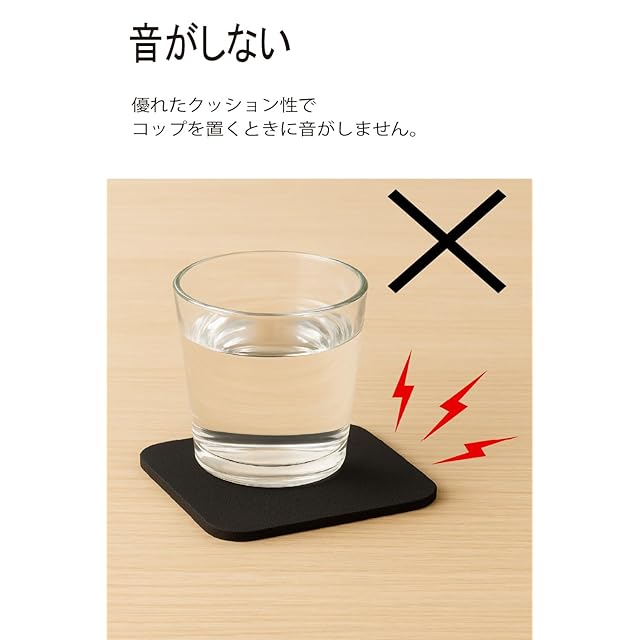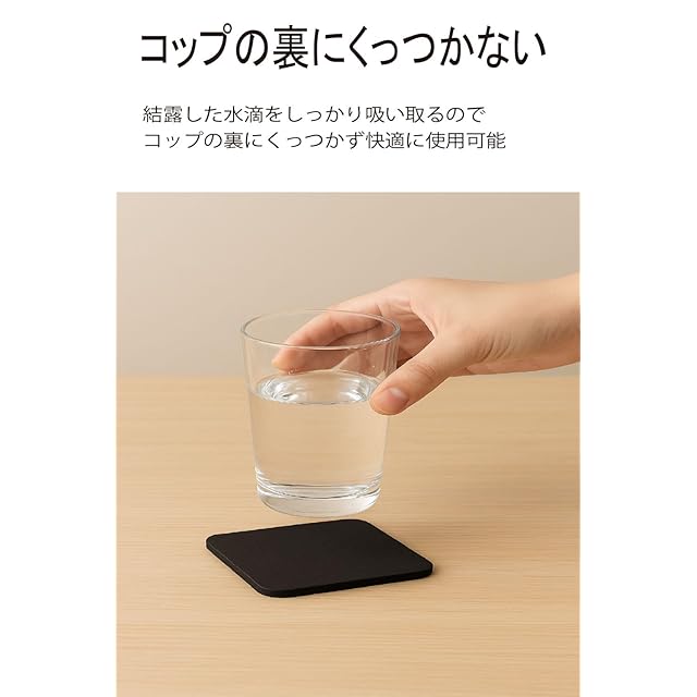 商品名:アイオン 吸水コースター スポンジ製 四角 ブラック 1枚入 9×9cm コップの底にくっつきにくい 滑りにくい 洗浄可 日本製 171-BK