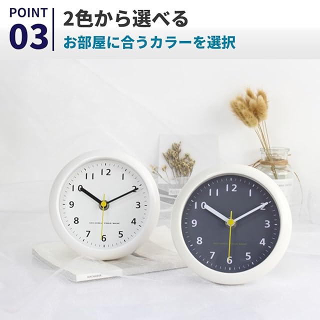お風呂や洗面所でも使える防水仕様のシンプルクロック。吸盤・スタンド・壁掛けの3WAY設置に対応し、鏡やタイル、棚の上など設置場所を選びません。防水・防塵設計により水まわりでも安心して使用でき、静音ムーブメント採用で生活空間にも最適。 直径16cmの見やすい文字盤は、グレーとホワイトの2色展開。シンプルながらおしゃれなデザインでインテリアにもなじみます。電池式でコード不要、設置も簡単。日々の時間管理やバスタイムの快適さをアップしてくれる一品です。