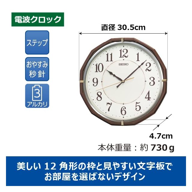 商品名:セイコークロック(Seiko Clock) 掛け時計 電波 アナログ 茶メタリック 305×305×47mm KX274B