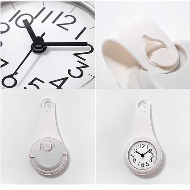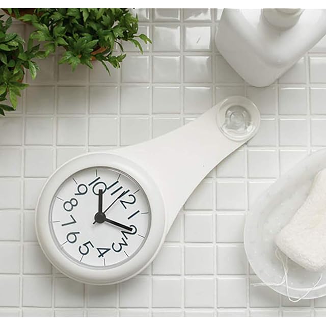 バスルーム時計 防水クロック 掛け時計 ウォールクロック 吸盤付き 防水 静音 浴室 キッチン お風呂 家庭用 おしゃれ (白色)