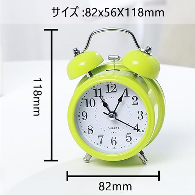 商品名:目覚まし時計 置き時計 ツインベル 連続秒針 おしゃれ 振動機能 カチカチ音なし 夜でも見える 寝室用及び装饰品(グリーン)