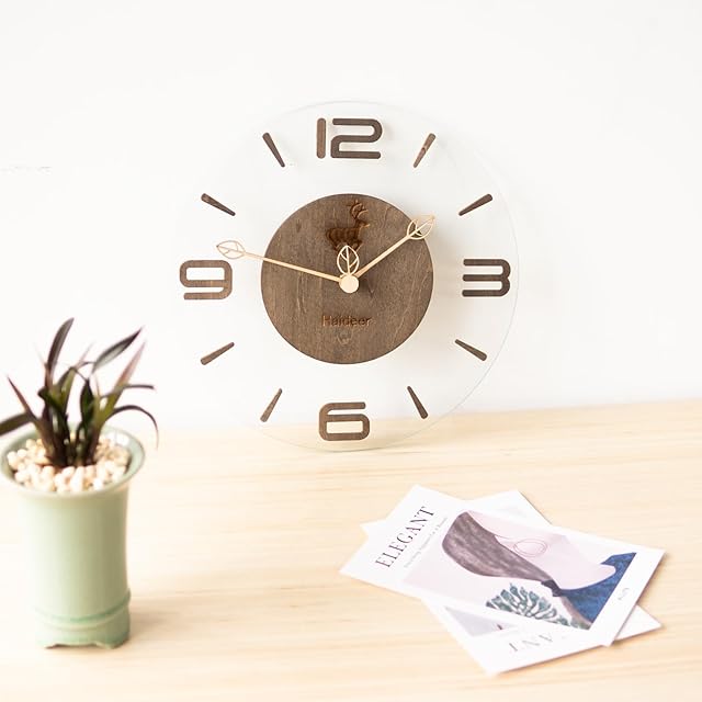 【自然素材】実用的でファッショナブルな掛け時計です。黒と茶色の数字が時間と分を表示し、透明な文字盤で子供や高齢者でも見やすいです。キッチン、図書館、オフィスなどで正確な時間を一目で確認できます。シンプルな大きな数字で正確な時間を簡単に知ることができます。時間と分表示の目盛り付きで、子供たちも読みやすいです。