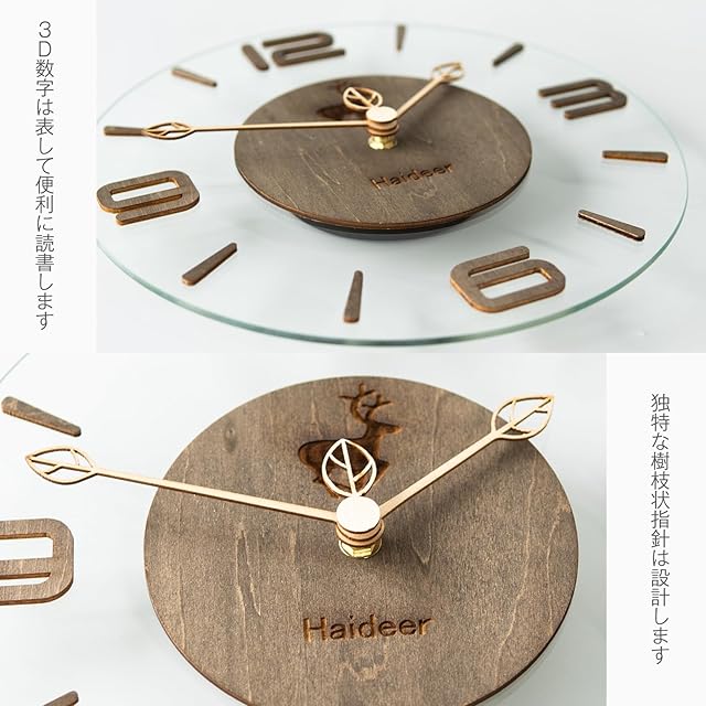 商品名:掛け時計 おしゃれ 時計 壁掛け 静音 透明 木製 ウォールナット クロックwall clock モダン スタイリッシュ 時計 壁掛け おしゃれランキング シンプルデザイン リビングルーム インテリア 手作り 02