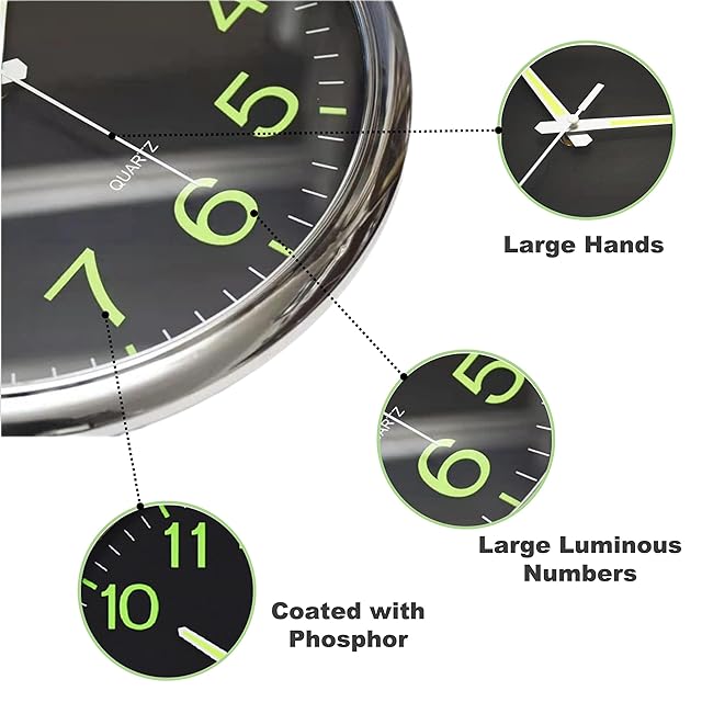 YRBY 【発光壁掛け時計発光原理と利点】 蓄光性壁掛け時計の発光原理は、日中は光エネルギーを吸収して蓄え、周囲の光が弱いときや消灯すると発光する形で放出されます。 これにより、外部光源を必要とせずに暗闇で時計を見ることができます。 さらに、暗い環境での使用に便利で、明るい光のように睡眠を妨げません。