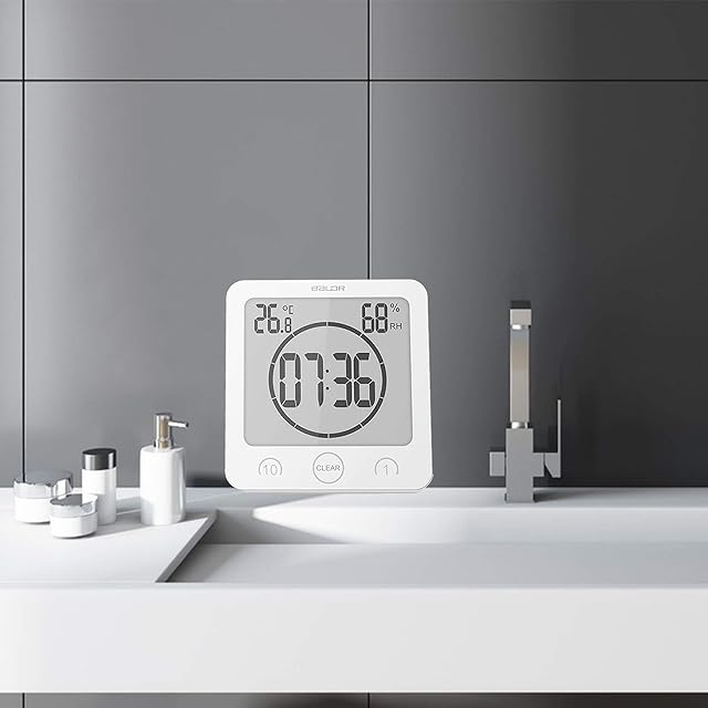 Aiyoupin 防水時計 デジタル 防水とけいLCD大画面 温湿度計シャワー時計 温度 湿度計 デジタル 液晶 吸盤 壁掛け置き お風呂 クロック 時間表示 温度計 湿度計 &計シャワーお風呂 (ホワイト)