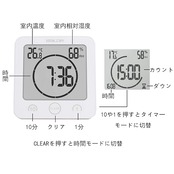 【多目的モニターデジタル防水時計】時間、温度、相対湿度、タイマーが一つ大画面に表示されます。シャワーや化粧をする時、時間の確認と温度湿度の管理に大変役立っています。【温度/湿度/表示】表示やすい画面に温度と湿度を表示してくれるデジタル温湿度計。温度計と湿度計が一緒になっているから室内の空調管理がしやすく、赤ちゃんがいる家庭やペット(犬、猫、うさぎ、爬虫類などのいる家庭におすすめです。風邪や乾燥、カビなどの予防目安として活躍します。