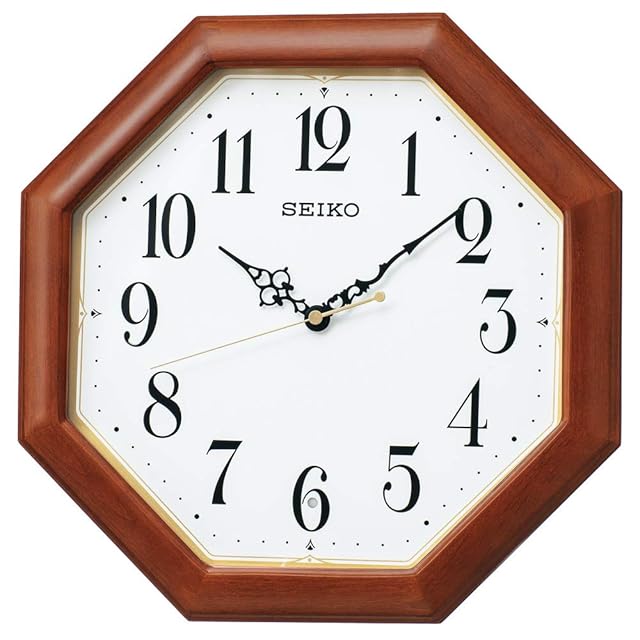 商品名:セイコークロック 掛け時計 電波 アナログ 木枠 八角 茶木地 本体サイズ:33.0×33.0×4.8cm KX247B