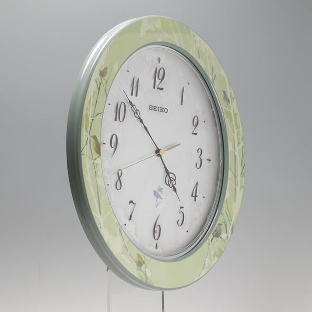 商品名:セイコー クロック 掛け時計 ネイチャーサウンド 12種類 電波 アナログ 報時 切替式 薄緑 模様 光沢 RX214M SEIKO