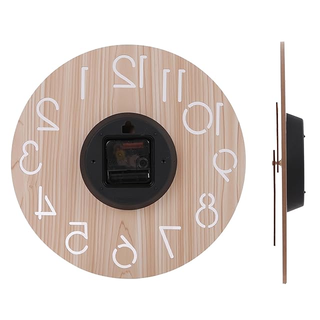 商品名:qweqw 壁掛け時計 木目調 木製 かわいい インテリア ウォールクロック 静穏 秒針なし 非電波 北欧スタイル ウッド おしゃれ アナログ 直径30cm (B:葉付き)
