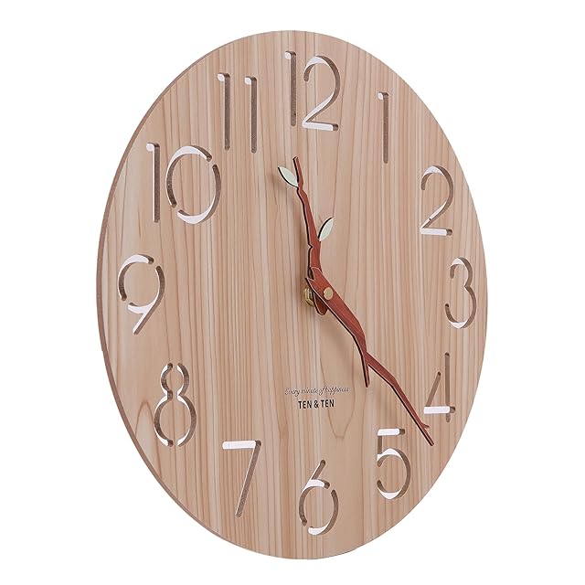 qweqw 壁掛け時計 木目調 木製 かわいい インテリア ウォールクロック 静穏 秒針なし 非電波 北欧スタイル ウッド おしゃれ アナログ 直径30cm (B:葉付き)