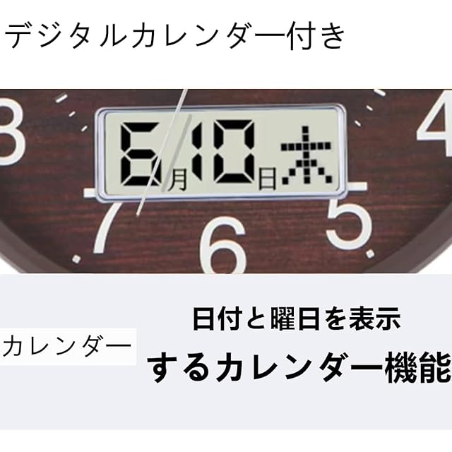 ●メーカー:1年 <br>●時刻を自動で修正する電波時計<br>●コチコチならない静かな連続秒針<br>●直径約35cm、シンプルで見やすい文字板デザインのアナログ表示掛け時計 <br>●日付と曜日を表示するデジタルカレンダー付きの掛け時計