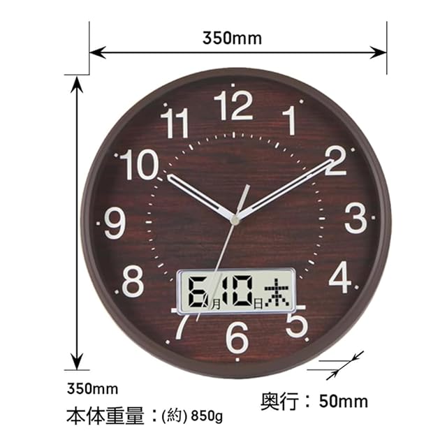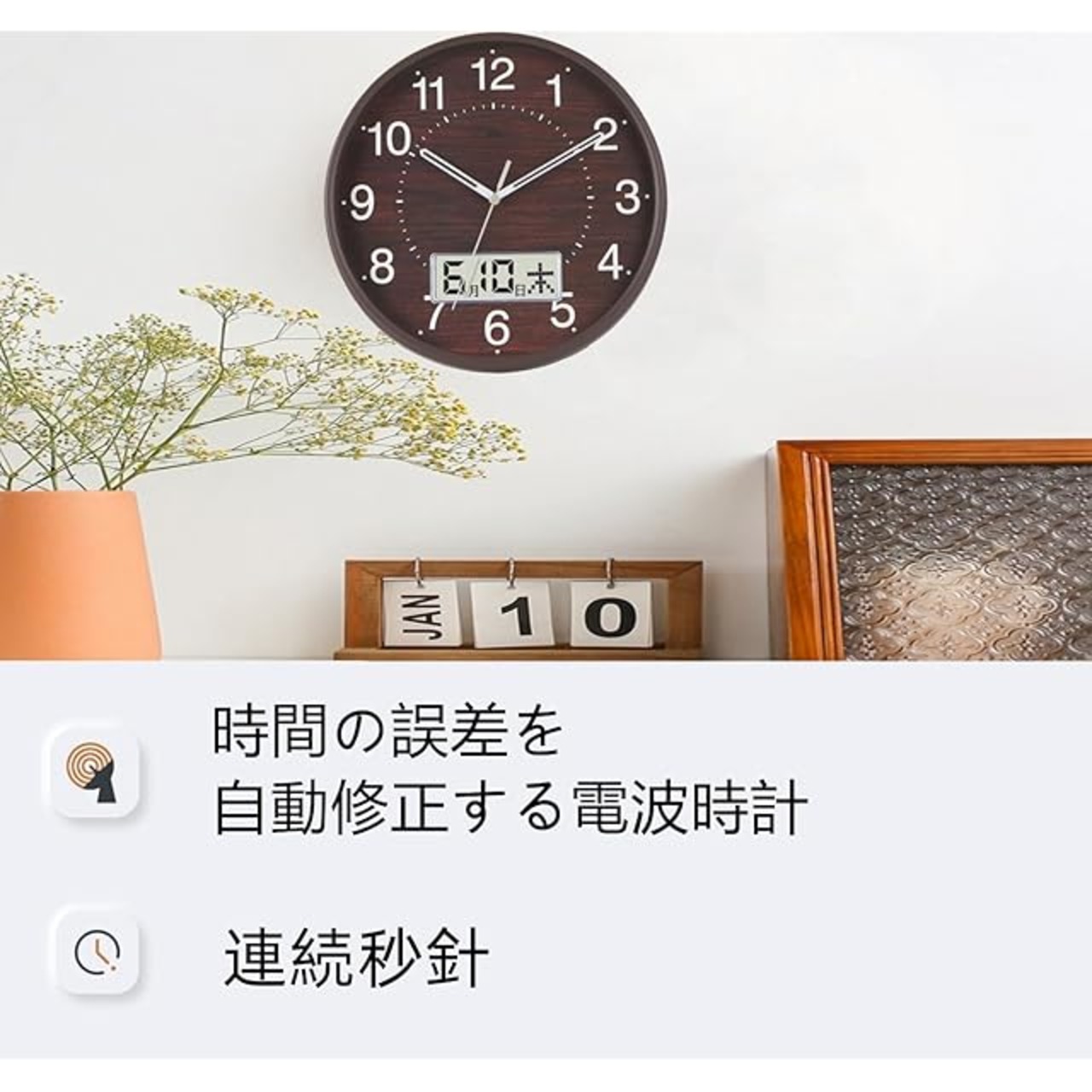 商品名:Nbdeal 掛け時計 電波時計 静音 連続秒針 直径35cm 大型液晶 日付 曜日表示 ブラウン DBKF-4837