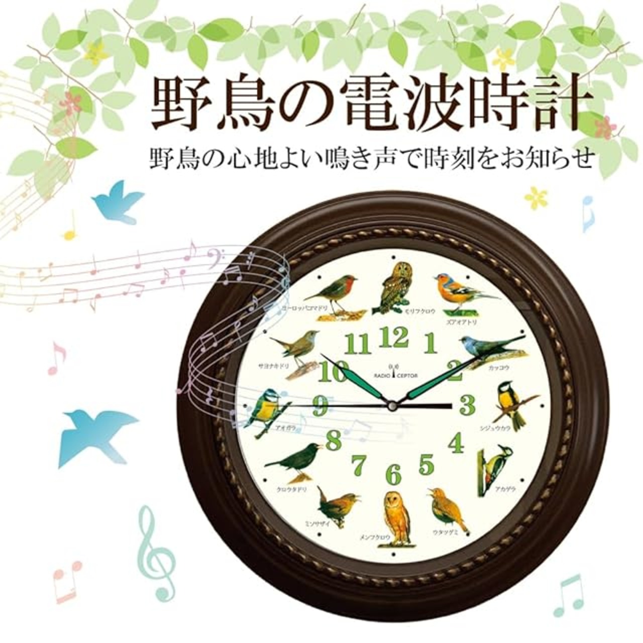 【正確な時刻を鳥のさえずりでお知らせ】正確な時刻情報をのせた電波を受信することにより現在時刻を表示する時計です。サラウンド機能でまるで野鳥が近くでさえずっているような臨場感が味わえます。
