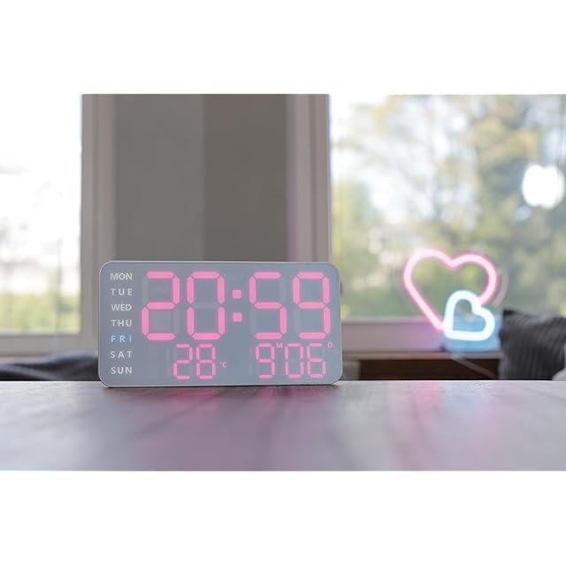 SLOWER 掛け時計 デジタル LED おしゃれ デカ文字 インテリア 置き時計 日付 気温 曜日 PINK/WHITE LED CLOCK Cielo SLW372