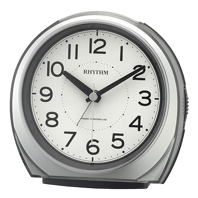 商品名:リズム(RHYTHM) 目覚まし時計 電波時計 電子音アラーム (ジャストアラーム機能) ライト付き シルバー 13x13.3x7cm 4RL438SR19