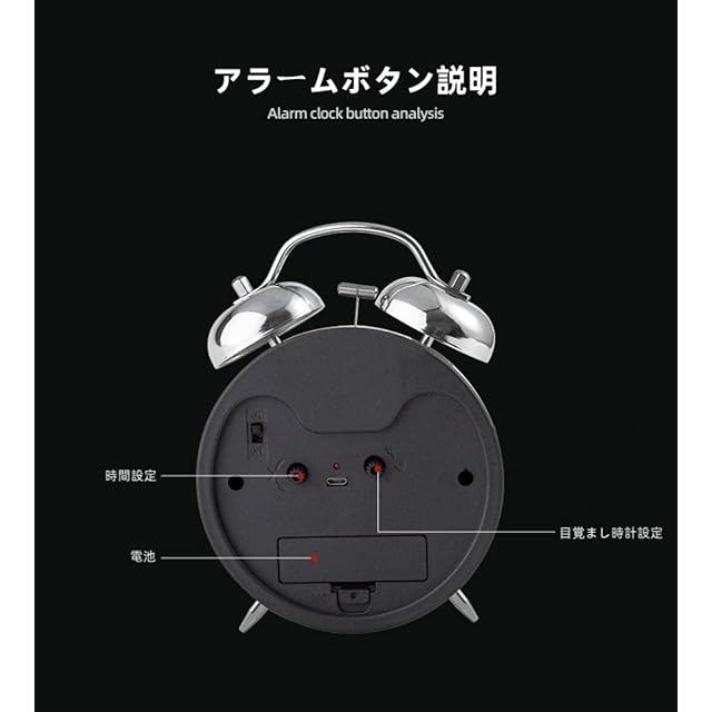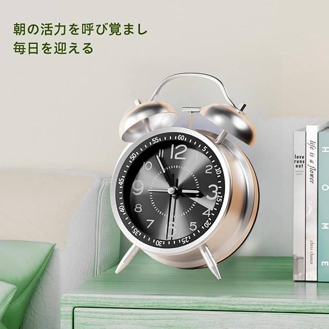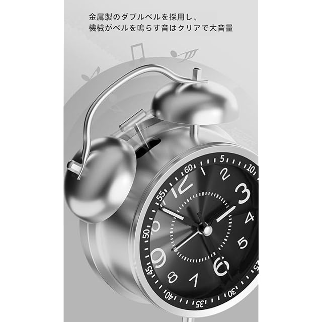 商品名:YYDS 大音量 目覚まし時計 子供 振動 アナログ 絶対起きる目覚まし時計 ベル オシャレ 可愛い 起きられない人用 置き時計 卓上 連続秒針 大音量リンガー ダブルベル 北欧風 静音 実用的 金属光沢 バックライト付き (ブラック+シルバー)