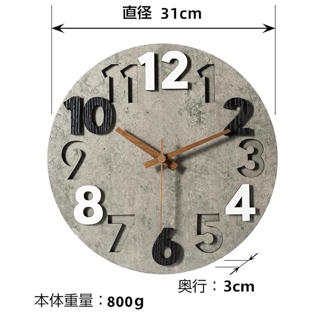 商品名:Nbdeal 掛け時計 電波時計 連続秒針 直径31cm 静音 本体/MDF 中密度繊維板 針/木製針 RB-310 ダークグレー