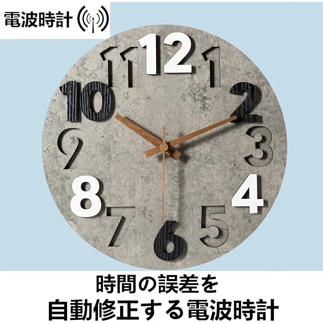 ●メーカー:1年 <br>●時刻を自動で修正する電波時計<br>●音が静かな連続秒針 <br>●文字盤木製MDF 中密度繊維板,ナチュラルさにこだわった木製の針<br>●立体的な凹凸透かし彫りの数字