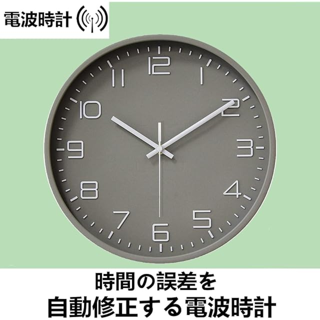 機能 : 秒針の音がコチコチならない静かな連続秒針を採用・時刻を自動で修正する電波時計・立体文字