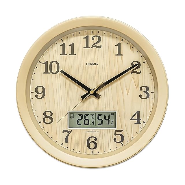Formia(フォルミア) 電波時計 掛け時計 見やすい 木目 おしゃれ オフィス リビング ダイニング 熱中対策 温度計 湿度計 夜間秒針停止 アナログ デジタル ナチュラル インテリア