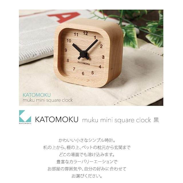 KATOMOKU muku mini clock km-25BK 角 黒 置時計 木製 85×85×46mm