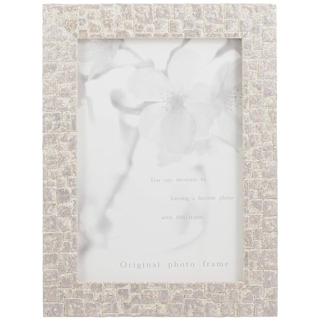 フランス語で「石畳み」を意味する美しいフレームです。アイボリーはナチュラルなテイストに、ほんのりピンク付いたラメはエレガントなテイストがよくマッチします。 卓上壁掛け兼用素材:樹脂製棹、アクリル、MDF 中台紙付