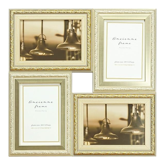 商品名:万丈 アンシャンフレーム4面L判 SL&GD(シルバー&ゴールド) 【壁掛け可】106295